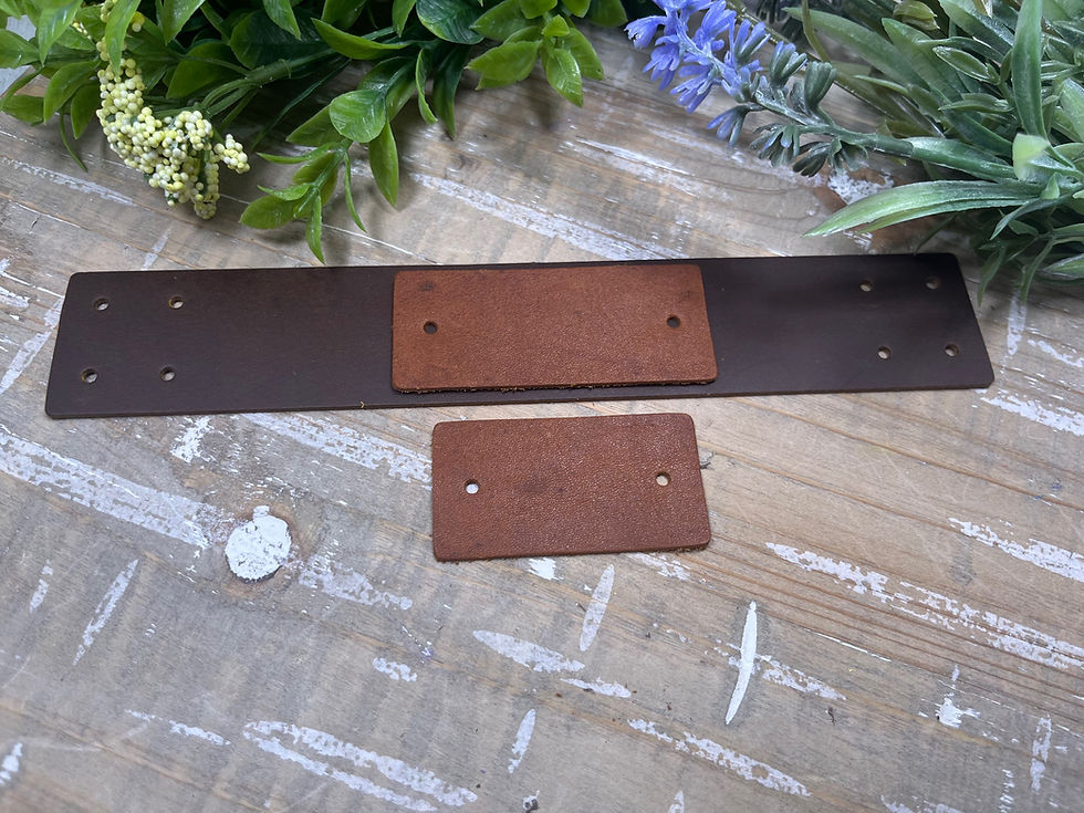 This die cuts 3 pieces. One 1.5" cuff with holes for snaps and 2 rectangle pieces with holes to be used in the center. Rectangle pieces are 3" and 2.45". Cuff will fit up to 8.5" wrist